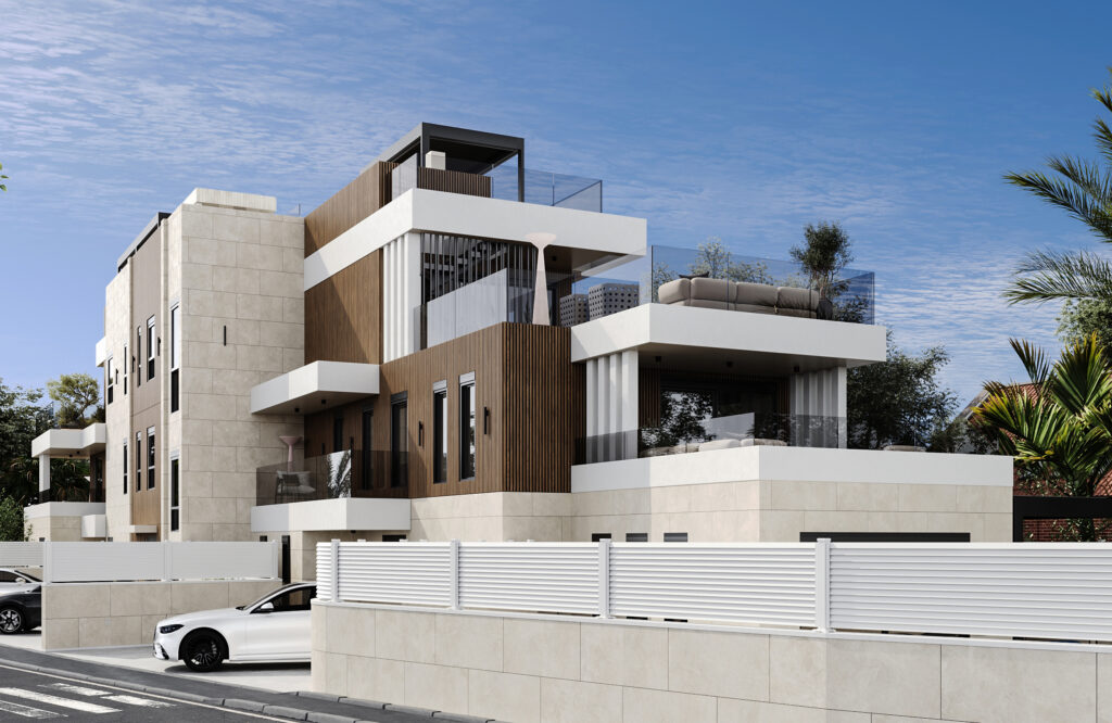 Each building will have access to an underground floor with garages and storage rooms for tenants. On the ground floor, there are business premises and apartments with private gardens and swimming pools or jacuzzis. The residential units on the first floor have spacious terraces and access to the pool, while the tenants of the penthouses with their roof terraces can enjoy private heated infinity pools.
