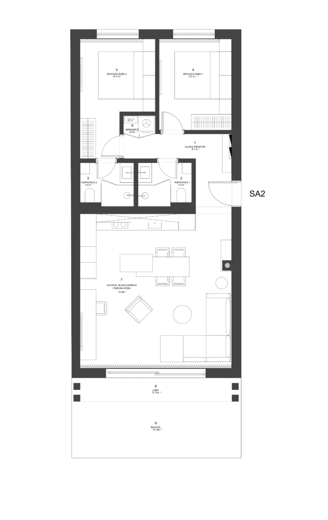 85,65 m² w/ coef. (w/o coef. 116,02 m²)