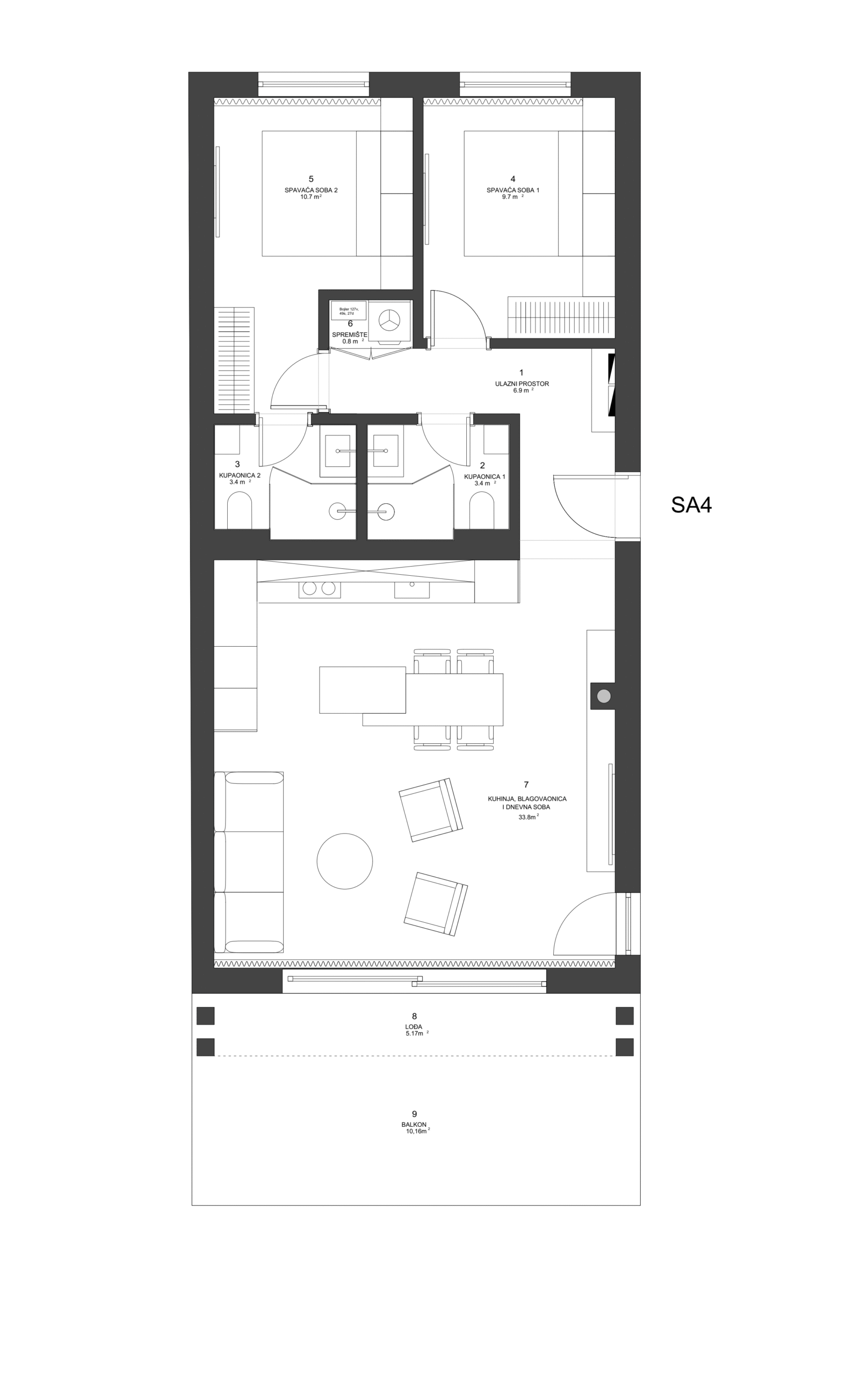 121,82 m² w/ coef. (w/o coef. 204,88 m²)
